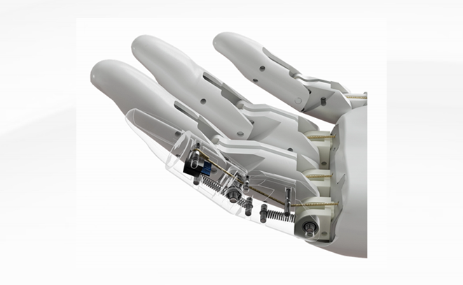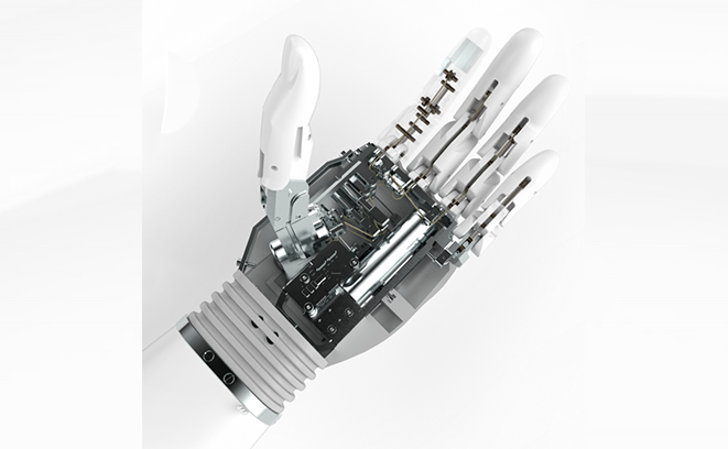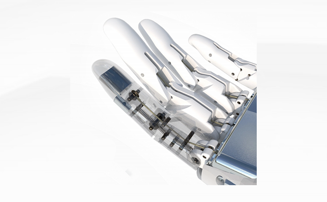 整体外观设计主要基于成年人手型国家标准的统计数据,结合手部控制部位尺寸回归方程及手部型号覆盖率来确定最终的产品手型,使得产品能满足不同类型、不同区域、不同性别的成年人手型;同时充分借鉴了人手运动学科学理论来进行动作仿真,通过高仿生设计让产品符合人体的生物运动学特性。